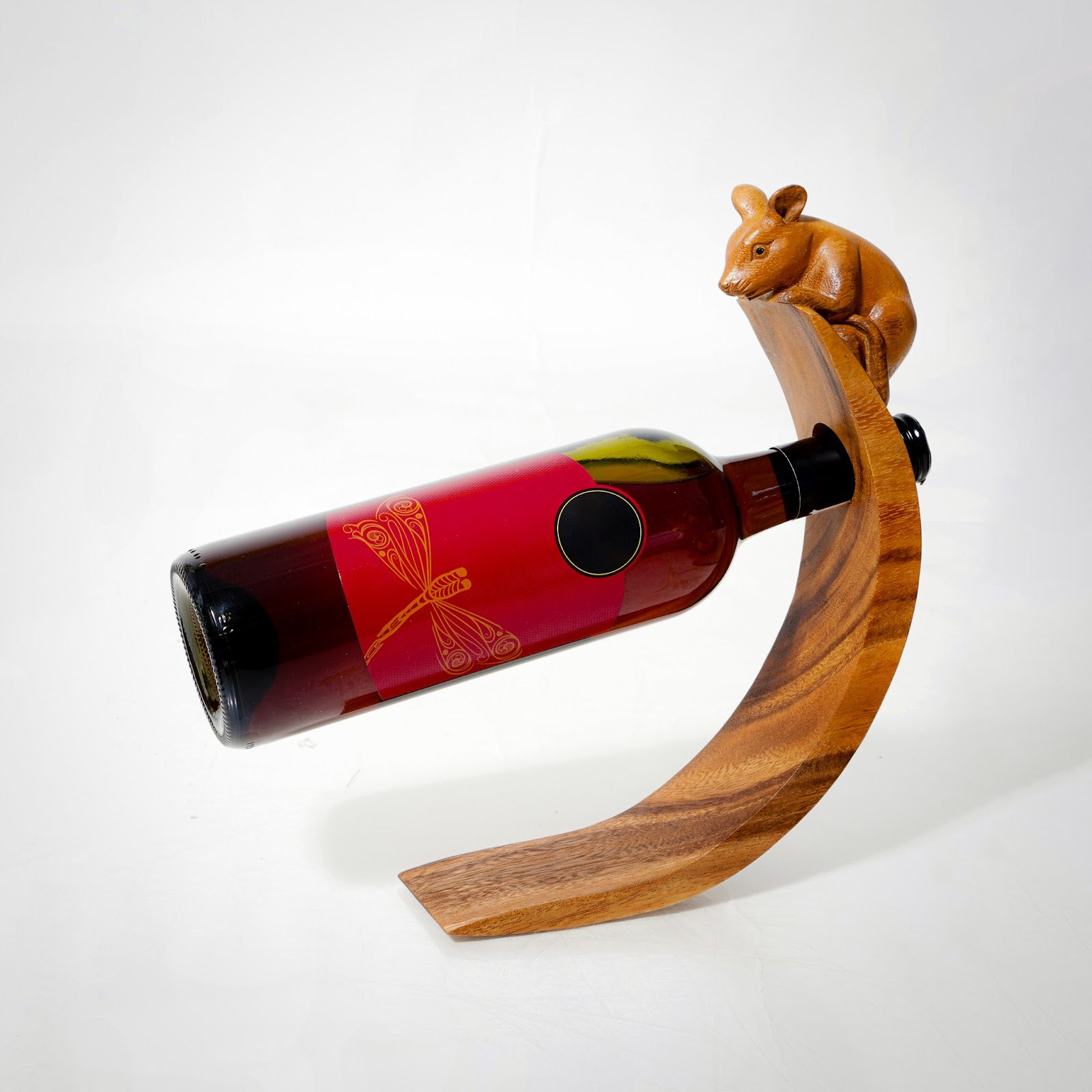 Elegant, minimal, and full of character — the Possum Wine Holder is handcrafted from solid Balinese Suar wood and designed to suspend a wine bottle in perfect balance. Its curved silhouette brings a refined touch to modern interiors, from dining tables to wine cabinets.